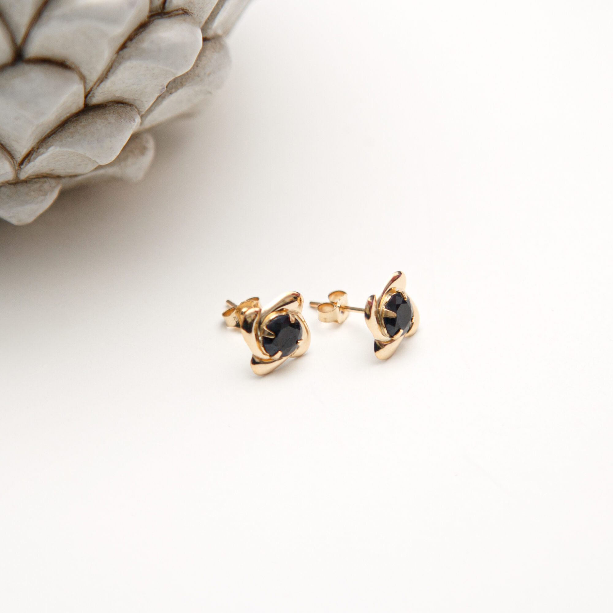9ct Yellow Gold Wave Square Stud Earrings With Sapphire